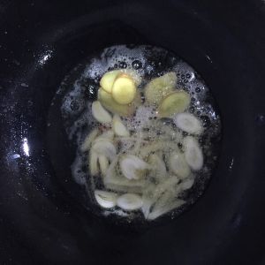 锅里放油,烧热后放入辣椒和花椒,然后放葱姜蒜,爆香。油可以多放点。