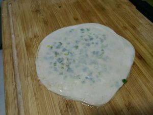 擀薄,厚度自己随意,锅里放油小火煎熟。