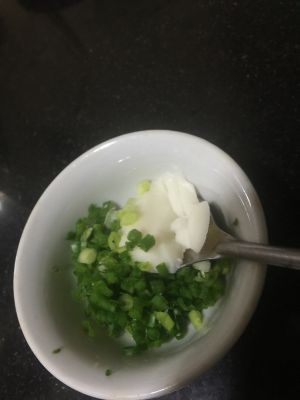500克面粉加冷水开水和好面团醒40分钟,中间玻璃碗里是油酥:20克面粉加40克猪油混合成油酥,切好小葱