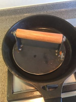 葱油饼专用压饼工具使劲往下一压,没有这个工具提前在案板上用手压扁