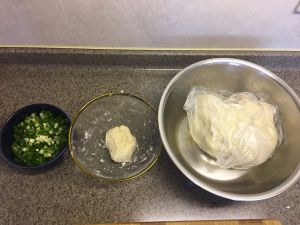 温水和面,讲面团揉至光滑后盖上湿布醒十几分钟