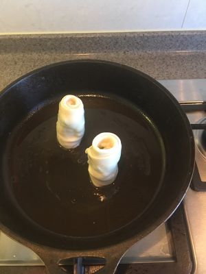 4个都做完,煎锅热锅下锅,用大火10分钟后转中火翻面再8分钟,即可出锅