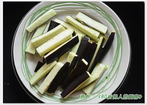 茄子洗净切成细长条。锅内烧开水,茄条放入盘内,加锅盖大火蒸8分钟左右,用筷子一扎能透了即可。取出晾凉后入冰箱冷藏10分钟这样。