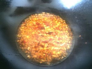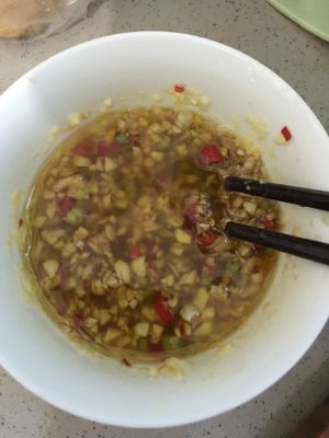 锅中少许底油,将蒜末,姜末放入锅中翻炒,等蒜末,姜末变色后,加点生抽,糖,盐,葱花和鸡精调味