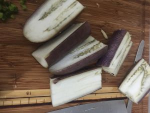 同时,茄子切开,放入蒸锅蒸煮,因为时间比较长,边蒸茄子边准备料汁。 也可以用微波炉。