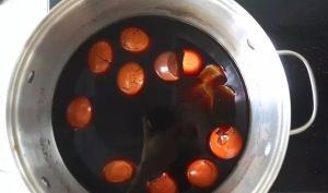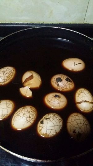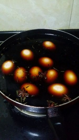 锅中重新放水没过鸡蛋,放入各种调料。小火煮一小时。