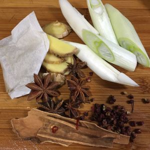 把所有调料放入包装纱袋,装些你手头有的香料(基本款的桂皮八角香叶等)。