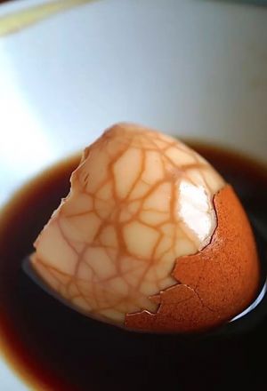 鸡蛋煮熟,冷水激过,敲碎蛋壳备用