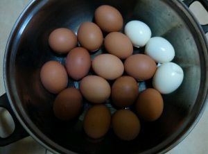 一盆清水烧开,放刚才那些调料,放鸡蛋