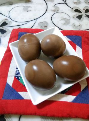 将茶叶,八角,大料,花椒,桂皮等辅料放入凉水4碗煮开。 再把已经剥好的鸡蛋放入煮好的调料水中,放少许酱油,盐3两左右。腌制1天即可。