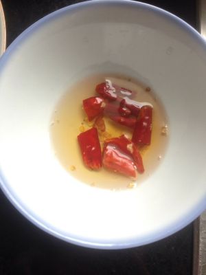 锅烧热,放入少量油,把烧热的油到入辣椒碗里,