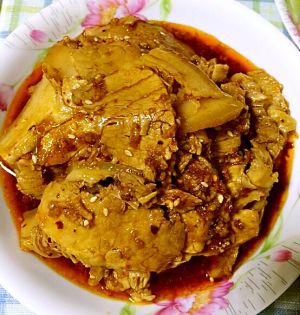 肉稍凉后切片,我切工差不能切成薄薄的大片,最好能切成巴掌大的薄片最完美了