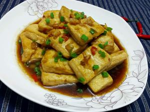 洒上葱花,出锅装盘,美味诱人的家常豆腐就做好了