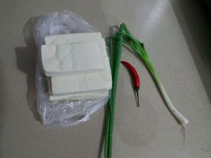 将豆腐切成小块,将水烧开,放入豆腐,60s 后起锅备用