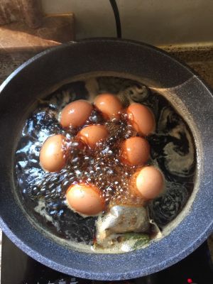 锅内加入2.5L水,放进洗过的鸡蛋,加入各种香料。