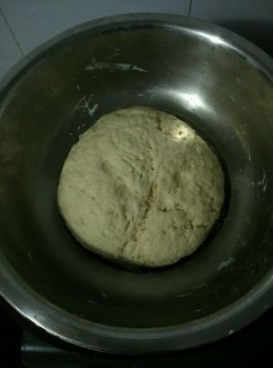 启动面包机后,开始和面程序后,用手揉圆面团后,重新放入面包机里开始醒发。
