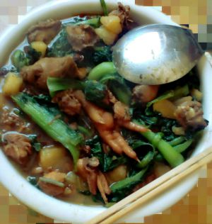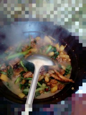加上啤酒土豆,小白菜,盖上锅盖,煮10到20分