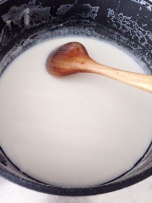 白砂糖加牛奶隔水加热至白砂糖全部融化