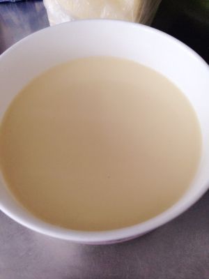 牛奶加砂糖隔水加热至糖溶化,稍微凉凉至不烫手