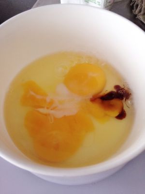 鸡蛋打散加入炼奶和香草精 加入淡奶油拌匀