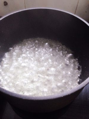 将白砂糖和大约一杯水倒入锅内,熬制焦糖