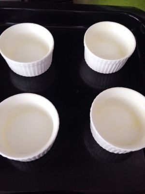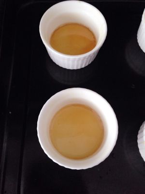 焦糖趁热倒入模具 我这里的焦糖是四个梳乎厘杯的份量