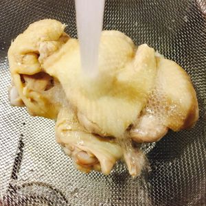 把鸡肉放锅里煮至用筷子戳不冒血水 加点葱白和姜哦!