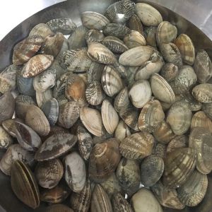花蛤盐水泡,多换几次水,一定要买新鲜的,不然不开口。