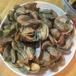 捞出稍微放凉就可以剥花蛤肉了。这花蛤特别好,没有一个死的,而且个个肥美