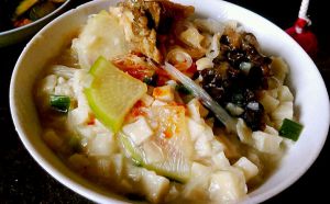 稍微煮一会(可以尝一下馍的硬度),觉得差不多了,放入粉条。