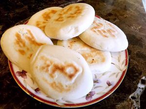 约1个半小时后,再揉光,分成几份,擀圆,待数分钟后,放入平底锅,小火烙至两面呈发黄斑点,即可。冷却后掰成小块待用。