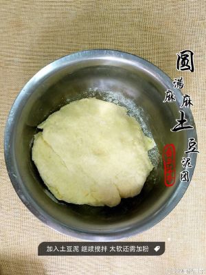 最终能达到土豆泥沾手的效果(PS:面粉可以一点一点慢慢加,面粉太少土豆泥粘性不够,油一炸会散,面粉太多土豆饼口感不好)
