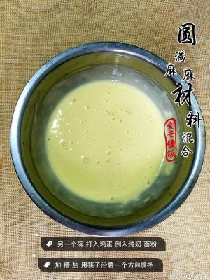 另一个碗 打入鸡蛋 倒入纯奶 面粉 加糖 盐 用筷子沿着一个方向搅拌
