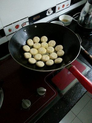 然后锅里倒入油,小火放进土豆饼,慢慢煎
