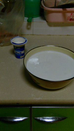 将盒子放入酸奶机,插上电源通电。等待几小时,直至酸奶凝固。(我是晚上做的,第二天早上就做好了。)