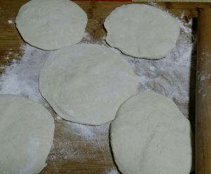 面醒好,再次和匀,做面剂擀成中间厚边上薄的面皮