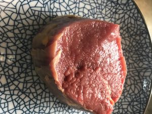 把牛肉上的水用厨房纸吸干,净锅入油烧热,放入牛排,煎到自己喜欢的熟度。待牛肉稍冷后切成小块或小条备用。