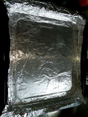 锡纸一张,铺在烤盆上,摸上少许的油