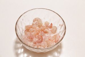 虾仁中加半只蛋清、一小勺淀粉抓均后腌制10分钟备用。