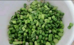 葱切碎末备用。 鸡蛋打散,加入少量盐,一半葱花和1:1的水搅匀。 大米饭最好是隔夜米饭,这样米饭里的水分比较少。 杂菜从冷冻层拿出备用。
