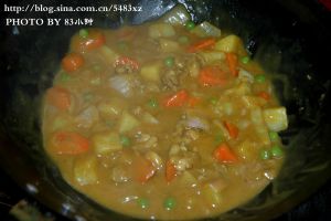起锅前加入一勺芝麻酱(芝麻酱味道很浓不建议太多会盖过咖喱味,一小勺即可)