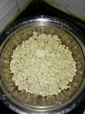 准备材料,鸡肉前一天晚上切丁,放上辅料中生抽,盐,五香粉,咖喱粉,水,淀粉腌一晚上。