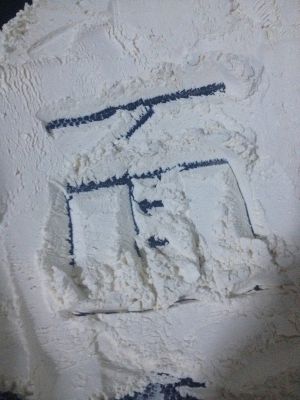 炒面粉很烦,很费事,火不能大会焦,火小炒又要很长时间。这个才是我第二次炒。第一次大概炒了半个小时,味道还可以。跟糖混合了,再加开水冲对,变成面团唔也不知道该叫他什么,妈妈说很多年没吃了,第一次就给她吃了,这个可以冲的软一点,也可以干一点,别变成液体,保持还是面团状。还可以冲一部分,然后用筷子夹了面团,粘点干的粉吃。