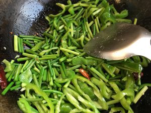 放青椒,大蒜,炒它