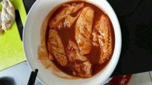 然后倒进烤料里腌制八个钟头