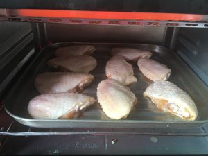 15分钟后拿出翻个面,把剩余的腌料倒在每个鸡翅上面,在放入烤10分钟