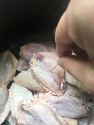 首先洗干净鸡翅,用牙签扎一个个小孔,方便入味