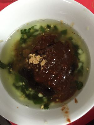 用酱油、料酒、蒜沫、香菜、胡椒粉、孜然粉、老干妈豆豉、葱花做料汁。