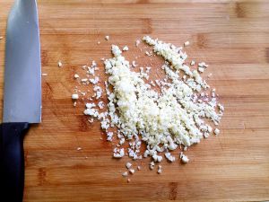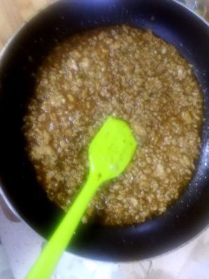 锅中放油,炒熟肉末后盛出备用,留底油,爆香蒜蓉,再放回肉末翻炒,放入蚝油和生抽,加少许水煮2分钟。