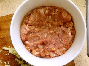 肉末加少许盐、生粉、黄酒,腌5分钟。